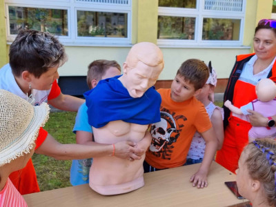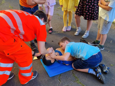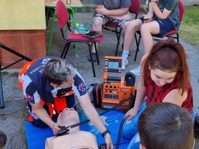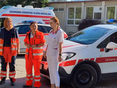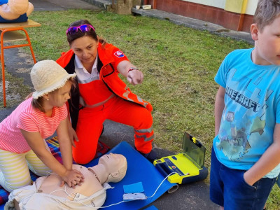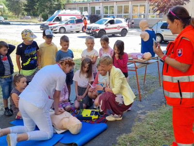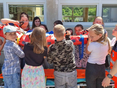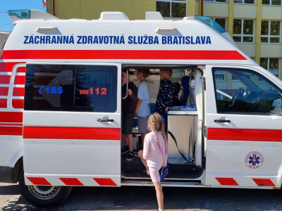 Skôr než zatvoríme brány školy a deti sa rozbehnú na prázdniny, pripravili sme pre nich stretnutie so záchranármi z Operačného strediska Záchrannej zdravotnej služby SR – Bratislava (Bc. Marcela Hajasová) a Záchrannej zdravotnej služby – Bratislava (Mgr. Petra Proftová) a študentkami Strednej zdravotnej školy v Žiline (Barbora Holejšovská a Veronika Holejšovská), ktorí nám porozprávali o tom, ako funguje operačné stredisko, naučili deti ako ohlasovať úraz alebo zdravotné ohrozenie. Každé dieťa si mohlo vyskúšať podávanie prvej pomoci na resuscitačných figurínach a tiež záchranu dusiaceho sa človeka. Zdravotníci s nimi nacvičili znehybnenie zlomenín, meranie tlaku, prenos zranených a záchranu topiacich sa. Deti pritiahol aj interiér sanitky a možnosť prezrieť si ho zblízka alebo sa nechať naložiť znehybnený na vozíku priamo do sanitky. Obdobie prázdnin je časom, kedy je zvýšené riziko úrazov a preto je veľmi dôležité vedieť poskytnúť prvú pomoc. Naši žiaci si to vďaka ochotným ľudom, ktorí sa im obetavo venovali mali možnosť nacvičiť v praxi. ĎAKUJEME!!!