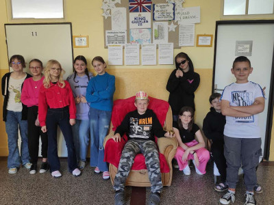 Dňa 05. 05. 2023 si žiaci anglického jazyka spestrili hodiny korunováciou. Inšpiráciu sme samozrejme získali z veľmi aktuálnej udalosti, o ktorej dnes píšu naše aj zahraničné médiá všade, kde sa pozrieme. Podstatou tejto kultúrnej mini vsuvky bolo – zistiť, kto je „the oldest student in the group“ = najstarší v skupine a mal by teda právo stať sa kráľom nášho imaginárneho kráľovstva. Okrem toho sme si posvietili aj na pár faktov z reálií Charlesa III – žiaci si zopakovali niečo o jeho rodinnom zázemí, štúdiu, zručnostiach a záľubách. Na nástenke, ktorá túto tému dopĺňala, nemohli chýbať ani dve veľmi dôležité stavby spojené s ceremóniou korunovácie a to: Buckingham Palace a prekrásny gotický kostol zo stredu Londýna – Westminster Abbey.
