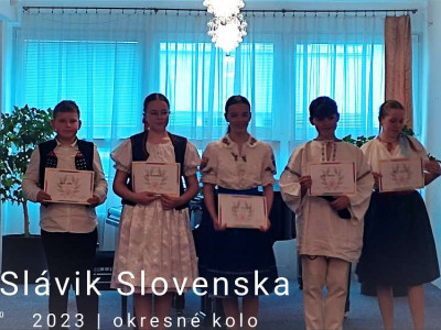 Dňa 17. mája sa uskutočnilo okresné kolo Slávika Slovenska v Žiline. Našu školu reprezentovala Dominika Jančiová, Alexandra Štrbániková zo 6.A triedy a Rút Štachurová z 8.A triedy. Dievčatá podali skvelé výkony. Rút Štachurová sa v 3. kategórii umiestnila na krásnom druhom mieste. Srdečne blahoželáme!