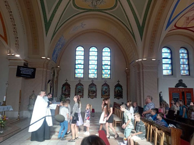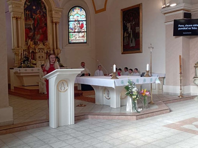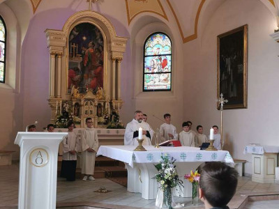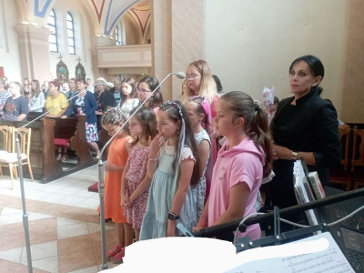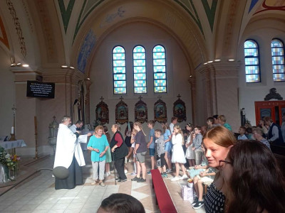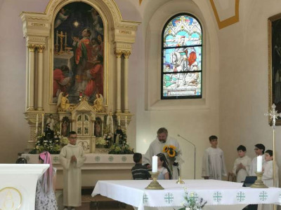 Za účastí žiakov zo Základnej školy v Dlhom Poli a pedagogického zboru sa uskutočnila ďakovná svätá omša Te Deum.