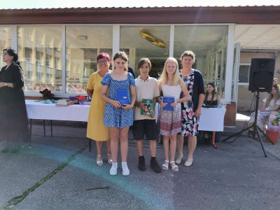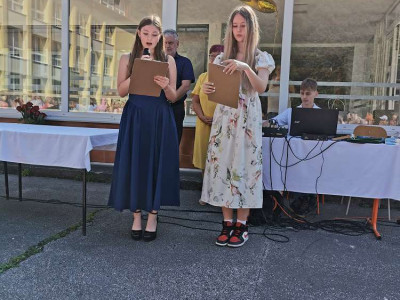 Slávnostné ukončenie školského roka sa konalo na školskom dvore. Po prejave pani riaditeľky Majky Šimulákovej a pána starostu Tibora Gajdošíka boli najlepší žiaci školy ocenení knižnými odmenami a tí, ktorí vyzbierali najviac starého papiera, dostali vecné ceny. Pán starosta poďakoval za úspechy najlepším futbalistom a so školou a učiteľským zborom sa rozlúčili deviataci.
