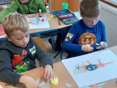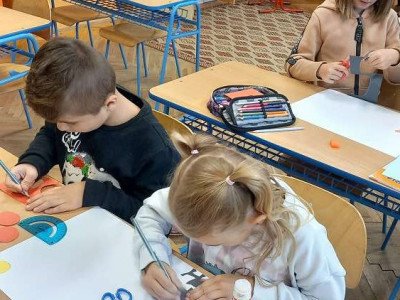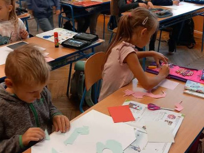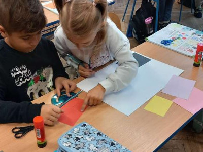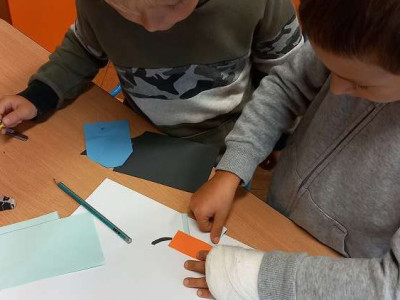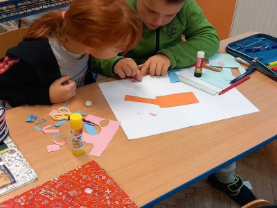 Žiaci z 2.B triedy vo dvojiciach vytvárali na hodine geometrie rôzne obrázky inšpirované vlastnou tvorivosťou a kreativitou pomocou doteraz osvojených geometrických tvarov. Vo svojej práci si vzájomne pomáhali a vďaka kooperácii vznikli veľmi pekné ,,detské“ obrázky, ktoré si môžete spoločne s našimi malými tvoriteľmi, a zároveň ,,majstrami diel“ popozerať.