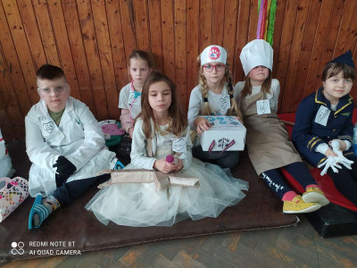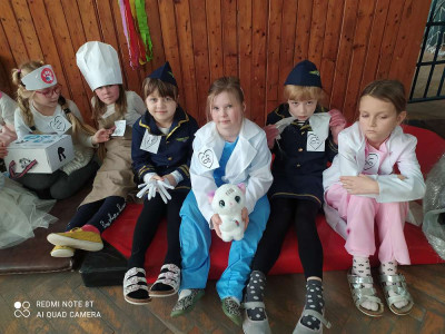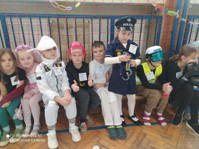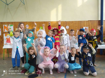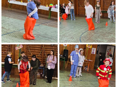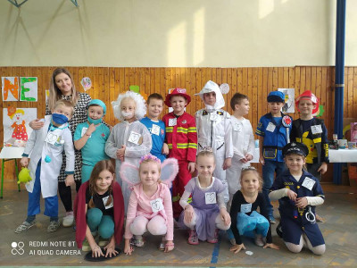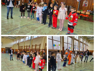 Fašiangy sú obdobím veselosti, zábavy a karnevalov. Aj tento rok ho pani vychovávateľky zorganizovali pre 1. až 4. ročník v telocvični školy. Vybrali veľmi pekný dátum, deň kedy sa odovzdávajú výpisy polročných vysvedčení. Pretože téma karnevalu bola povolania, nechýbali policajti, vojaci, predavačky, kuchárky, brušné tanečnice i športovci. Každá maska mala svoje číslo, vďaka ktorému mohla porota rozhodnúť, ktoré masky boli najkrajšie. Po krátkej promenáde boli pre deti pripravené rôzne zábavné súťaže, kde ukázali aj niečo zo svojej šikovnosti. Neskôr nasledovala diskotéka, počas ktorej sa veselo vyšantili. Všetky deti boli odmenené malým či väčším darčekom a odchádzali spokojné domov. Veď posúďte sami.