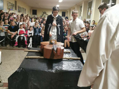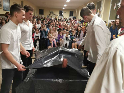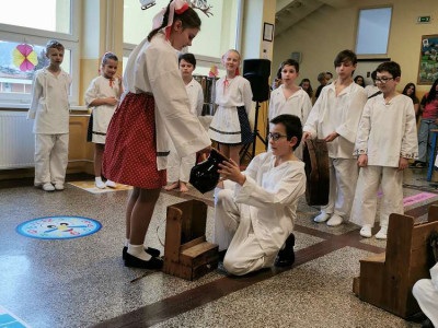 Už niekoľko rokov sa u nás tradične koná „Pochovávanie basy“, čo je ľudový zvyk znamenajúci koniec veselíc a začiatok 40-dňového pôstu. Celé podujatie otvorili žiaci 5. ročníka, ktorí nám pod vedením pani zástupkyne predviedli, ako v minulosti po svete putovali drotári i z nášho regiónu. Následne na to vystúpili žiaci z rôznych ročníkov, ktorí si s ich triednymi pani učiteľkami pripravili rôzne vystúpenia. Vďaka patrí aj rodičom za ochotnú prípravu občerstvenia v podobe sladkých a slaných dobrôt. Nesmieme zabudnúť na naše šikovné pani kuchárky, ktoré pre nás upiekli jelítka a zemiakové posúchy. Na záver žiaci deviateho ročníka „pochovali“ basu. Opäť ich pripravila pani zástupkyňa, a za to, a za zorganizovanie celého podujatia jej veľmi ďakujeme.