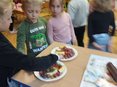 V rámci zdravej výživy a správnej životosprávy si žiaci pripravili ovocie nielen pre seba, ale aj pre našich prváčikov. Druháci chceli ukázať prvákom, aké je ovocie zdravé a dôležité zaradiť ho do jedálnička aj na desiatu. Druháci sa riadia heslom: „Lepšie viac ovocia, ako sladkostí.“ Počas prestávky sa presunuli do prvého ročníka a ponúkli ovocím prváčikov. Prvákom veľmi chutilo a nezabudli sa poďakovať.