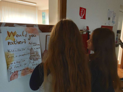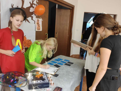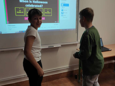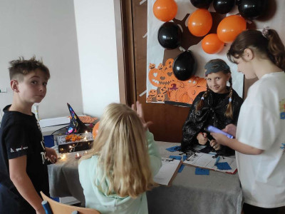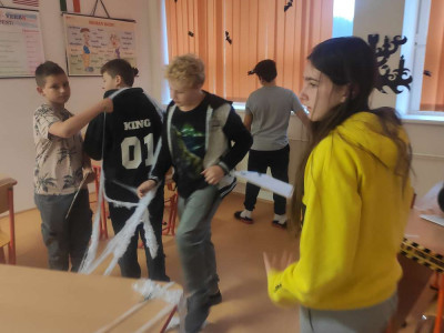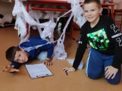 Keby existovali teleporty, bolo by krásne učiť hodiny cudzieho jazyka v zahraničí. Videli by sme z blízka miesta, ktoré máme zatiaľ len v knihách alebo na obrazovke, počuli by sme charming accents of native speakers spolu s ruchom ulíc, a zažili by sme si ten skvelý pocit, že to čo sa učíme, nie je len pre našu imagination, ale aj pre normal – real life. Zatiaľ však takú možnosť nemáme, ale snažíme sa minimálne priniesť niečo zaujímavé na naše ordinary lessons. Tento raz to bol Halloween, a hravé aktivity s ním spojené. Zabaviť sa mohli viaceré ročníky druhého stupňa. Svoje doterajšie vedomosti o tomto sviatku otestovali v teste na wordwall (Do you want to try it again? – scan the QR code that is in the gallery). Na ďalšom stanovisku si mohli vyveštiť budúcnosť a vytvoriť svoje vlastné predictions for their classmates s použitím will a len dobrých nápadov. V jazykovej učebni si zopakovali poslúchanie povelov a predložiek – go through the tunnel / it´s under / behind/ wrap / find … A hlavne sa zabavili a užili si niečo typické pre kultúru anglicky hovoriacich krajín.
