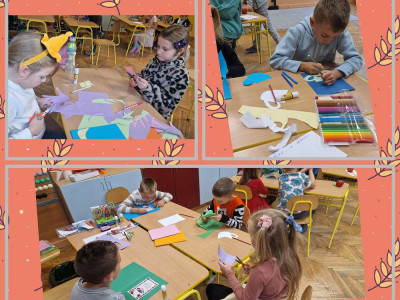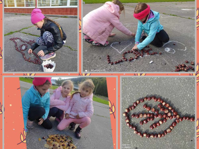 Vyrábali zvieratká, jabĺčka, sovičky. Kreativitu detí využívali pri tvorení s jesennými listami a gaštanmi. Vnímali zmeny a krásy prírody na jeseň, rozprávali sa, čo sa deje v záhradách a ako sa zvieratá pripravujú na zimný čas.