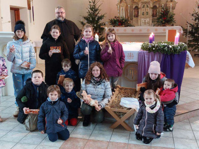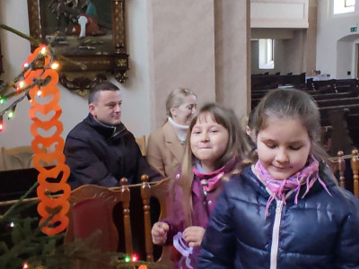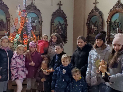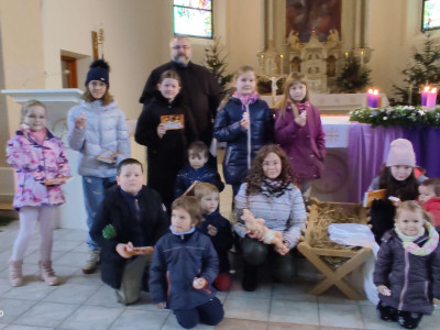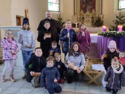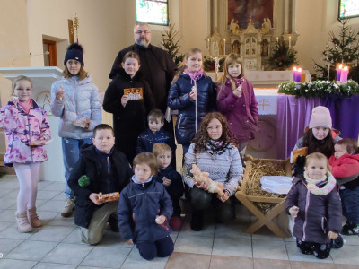Pod vedením Farského úradu a v rámci náboženskej výchovy bola pre deti základnej školy počas adventného obdobia vyhlásená súťaž v účasti na sv. omšiach a zapájaní sa do života farnosti. Za každú sv. omšu alebo službu, ktorej sa deti zúčastnili, si mohli zobrať srdiečko. Na Štedrý deň bola súťaž vyhodnotená. Za prvé miesto získala Rút Štachurová z 8.A triedy betlehemské Jezuliatko a ďalšie deti malých anjelikov. Nikto neodchádzal naprázdno. 😊 Sladká tofife-boboniera bola pre každého.