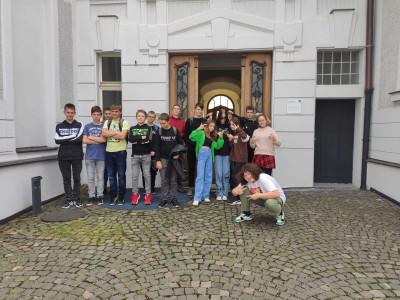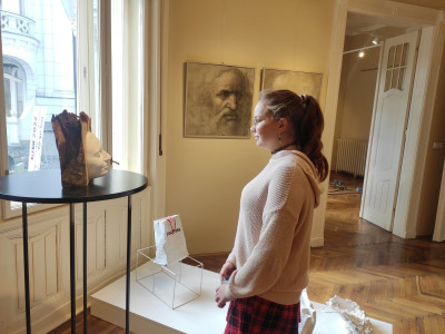 Dňa 28. 9. 2022 sa naša trieda 8.A zúčastnila exkurzie v Rosenfeldovom paláci. Už len našim príchodom nás očarila jeho nádherná stavba. Na fotografii vidíte jedno z diel, ktoré vo mne vyvolávalo dobré pocity a náladu. Vyjadruje niečo neopísateľné. Ďalšie dielo je jedno z najkrajších výtvorov. Jeho emócie žiarili len vstupom do miestnosti. Na poslednej fotografii vidíte celú našu triedu nadšenú z peknej exkurzie.