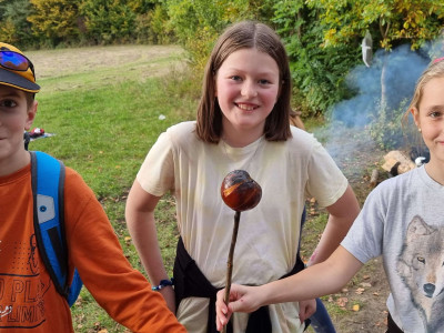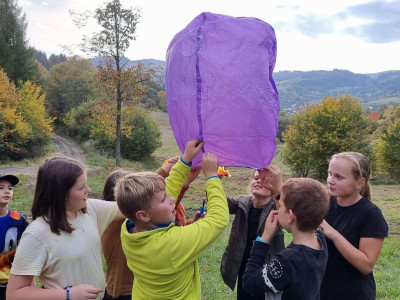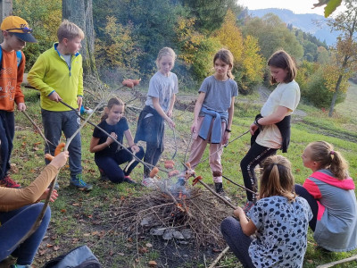 Jedného dňa na začiatku školského roka sme sa vybrali z krúžku na opekačku na Chotár. Spolu sme si nazbierali šípky na čaj a potom sa vydali po strmom a vysokom kopci smerom k Chotáru. Na vrchu sme sa pustili lesnou cestičkou a konečne sme sa dostali do cieľa! Nazbierali sme suché drevo, založili oheň a opiekli si na ňom špekačky, jablká a maršmelouny. Pani učiteľka Klimová nám dala darček, ktorý nám nechali deviataci. Bol to lampión! Spolu sme ho zapálili a vypustili. Všetci za ním kričali a kývali mu. Bol to úžasný zážitok! Po vypustení lampióna sme sa pobalili. Cestou späť sme sa zastavili v lesoch a nazbierali sme tam veľa húb. Potom sme si porozprávali o tom, ako sa ktorý volá. Keď sme dorazili do dediny, už sa pomaly stmievalo. Hoci sme boli špinaví, stálo to za to! Naučili sme sa mnoho nových vecí o prírode, zabavili sa a zažili sme super zážitky….!!!