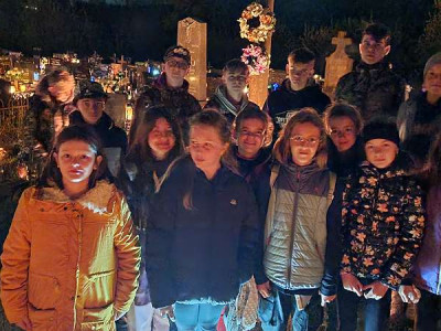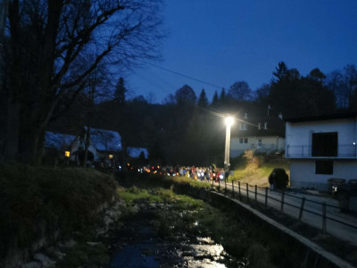 Akcia bola v stredu 2.11.2022. Išli sme do kostola na omšu o 18:00 a potom sme už vyrazili a išli cez cintorín smerom do hôr. Pomodlili sme sa pri kríži a zapálili sme sviečku. Pokračovali sme v ceste, prešli sme cez strelnicu na Chotár ku krížu. Tam sme sa zastavili na odpočinok a aby sme sa odfotili. Z Chotára sme išli naspäť domov a spievali sme si v tme 🙂 , aby sa tí najmladší nebáli. Pod cintorínom sme sa rozdelili. Niektorí išli domov pešo do Dlhého Poľa a Svederníčania čakali, kým pre nich prídu rodičia. Všetci sme mali špinavé topánky niektorí aj oblečenie, mali sme aj papanie a pitie a bolo to úžasné, nikdy na to nezabudneme . Ďakujeme pani učiteľke Klimovej, že nás tam zobrala.