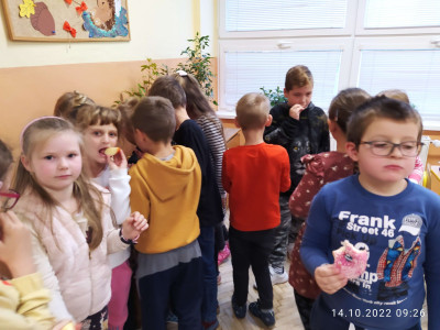 Žiaci 1. A si urobili „Ovocný deň“. Každý prváčik priniesol ovocie, s ktorým sa podelil so svojimi spolužiakmi. Takto strávili prestávku a tiež im ovocie zostalo aj do školského klubu. Aj prváci vedia, čo je pre nich zdravé.