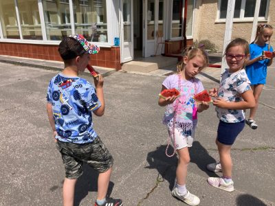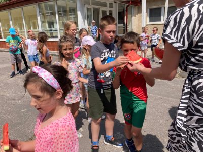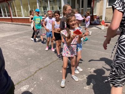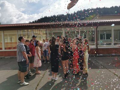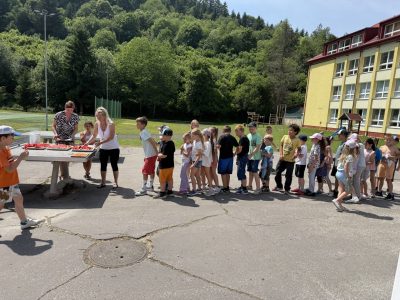 Slávnostné ukončenie školského roka sa konalo na školskom dvore. Po prejave pani zástupkyni Petry Šutarovej a pána starostu Tibora Gajdošíka boli najlepší žiaci školy ocenení knižnými odmenami. Pán starosta poďakoval za individuálne úspechy najlepším futbalistom a so školou a celým učiteľským zborom sa rozlúčili aj deviataci.
