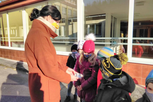 Touto obľúbenou pesničkou privítali žiaci prvého stupňa „svätého Mikuláša s anjelom“, ktorí v pondelok 7.decembra 2020 zavítali do našej vianočne vyzdobenej školy a detičky obdarovali sladkosťami. Osobitne navštívili deti v ŠKD – oboznámili sa so životopisom svätého Mikuláša , ktorý skutočne žil v 3.– 4.storočí. Bol mimoriadnou osobnosťou a preto sa úcta k nemu veľmi rozšírila. Na vytvorení radostnej mikulášskej atmosféry sa – s ohľadom na platné protipandemické opatrenia – podieľali naše deviatačky. Spríjemnili atmosféru dní neľahkej doby a pripomenuli, že život ide ďalej – a žiť sa musí… Ďakujeme.