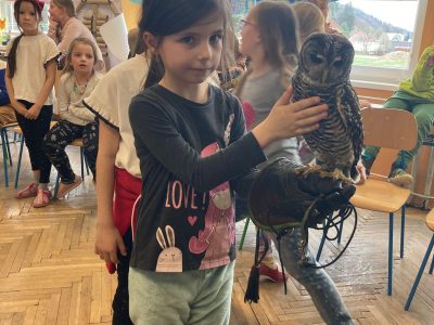 V piatok a v pondelok 7. a 14. apríla 2025 k nám zavítala pani Ing. Danka Bagová z organizácie „Čarovná moc prírody“. Hneď po príchode vyčarovala úsmev na tvárach všetkých detí, pretože prišla aj so svojimi kamarátkami sovičkami. Deti sa zážitkovou formou dozvedeli, aké druhy stromov a živočíchov nájdu v lese. Mohli si pozrieť parohy, pazúriky, kožušiny a pierka rôznych vtákov. Spoznali a dozvedeli sa, ako sa majú o prírodu a jej obyvateľov starať, pretože aj my sme jej súčasťou. Už teraz sa veľmi tešíme na stretnutie s pani Dankou o rok.