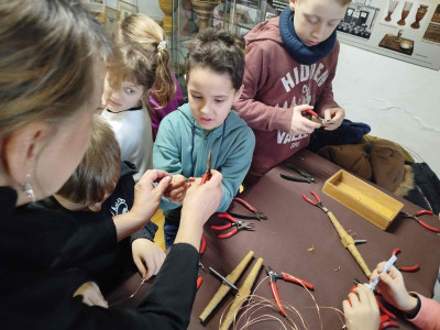 Dňa 6.2.2025 sa žiaci zúčastnili exkurzie v drotárskom múzeu u p. Šeríka v Dlhom Poli v dome Jozefa Holánika Bakeľa. Pán Juraj s pani Majkou ich privítali tradične chlebom a soľou. Žiaci si vypočuli rozprávanie o drotároch z tohto kraja, o ich živote a práci. Priblížil im život a prácu najznámejšieho z nich Jozefa Holánika Bakeľa, ale tiež svoje drotárske umenie, ktorému sa s radosťou tiež venuje. Žiaci si za jeho asistencie mohli vyskúšať drôtovanie, svoje zručnosti pri práci s drôtom a vyrobili si zopár maličkostí ako sú prstienky, srdiečka a iné drobnosti. Chlapci si vyskúšali krošňu, ako ju nosili džarkovia na chrbte. Pripomínala im dnešný ruksak, len o niečo ťažší. Exkurzia nadviazala na učivo vlastivedy o známych osobnostiach našej obce. Pani Majka žiakom upiekla tiež koláčiky, ktoré im veľmi chutili a nezabudli za ne poďakovať. Na záver sa všetci zapísali do kroniky návštev a spravili sme si spoločnú fotografiu.